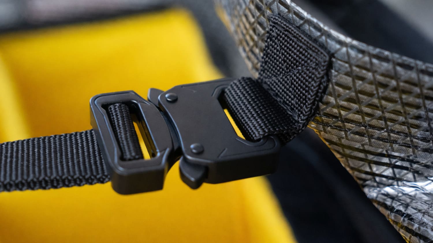 Robuste (950 kgf) Metallschnalle zur Sicherung Ihrer Ausrüstung.